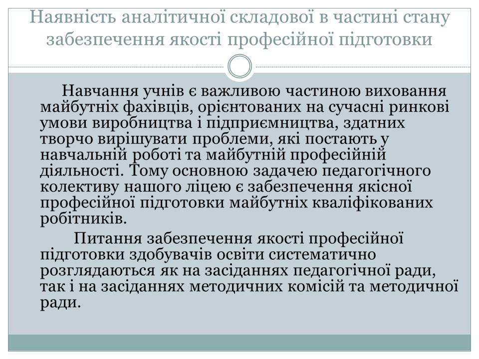 Стан забезпечення якості професійної підготовки